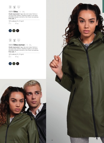 Oleado impermeável. Capuz fixo com viseira. Fechos e